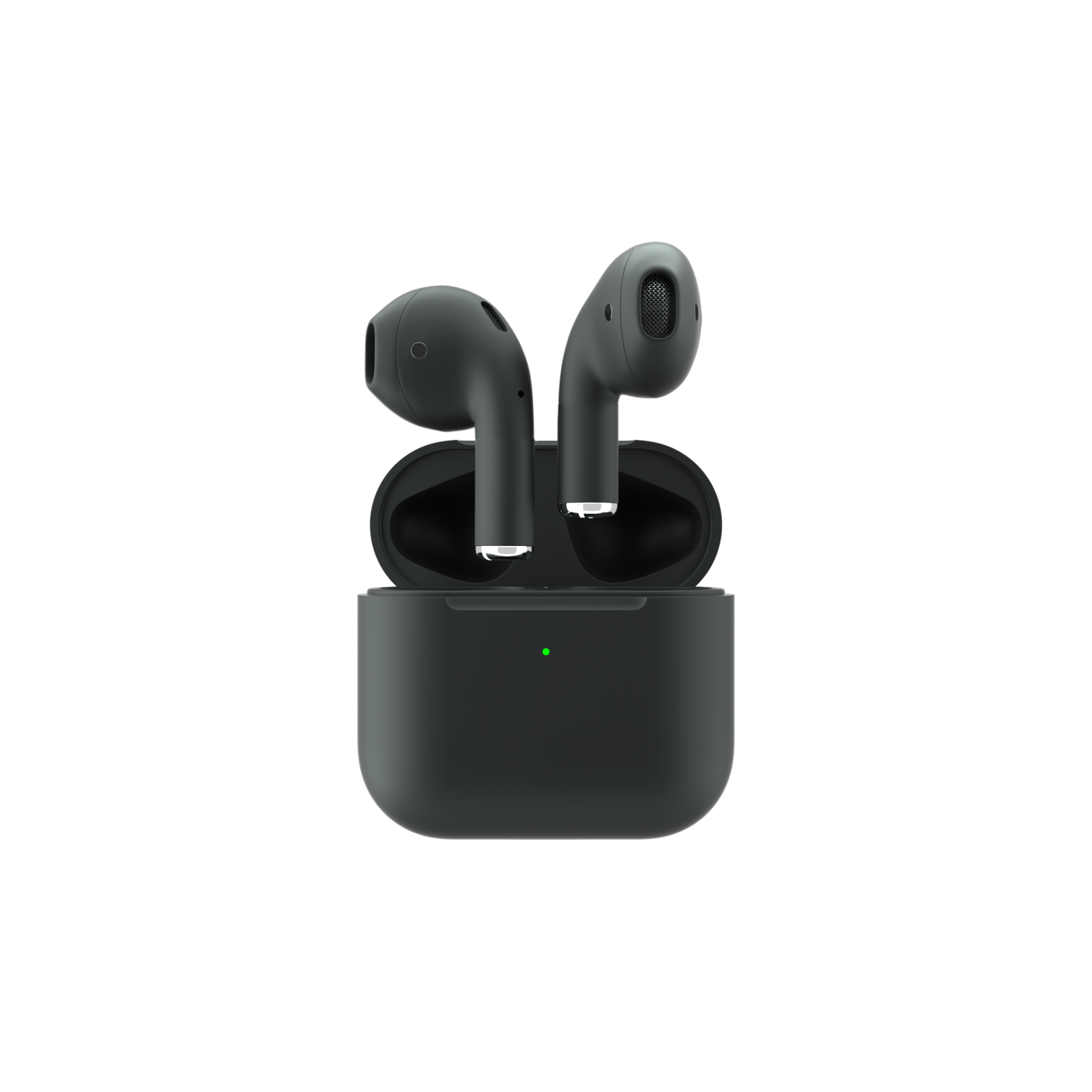 BlackPods Mini has a size and design that fits you. It is a slim, compact version of the BlackPods 2™ with an extra smart sensor feature. BlackPods Mini Latest Model is the 3rd generation of Black Pods. They are built with the classic matte black color design, and the small form factor is more practical when transporting. Also with built-in microphones, a battery of up to 4.5 hours, and high-quality sound. These BlackPods Lite earbuds will become your best friend on the road.