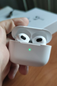 The notification LED light will be bright green when you connect your White Pods 3 to a power source with a lightning cable or put them in the base of a wireless charger.